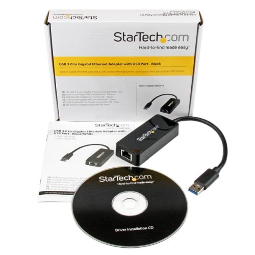 StarTech USB31000SPTB Black USB 3.0 to Gigabit Ethernet Adapter NIC w/ USB Port