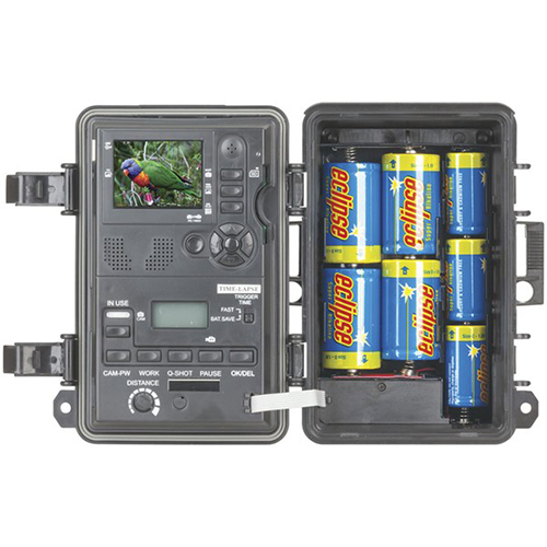 Other features include a fast 1.3sec trigger time, highly sensitive microphone, TV output, and security lock hole for a padlock. Power is provided by 4 x D and 3 x C batteries (batteries required). We recommend Alkaline batteries for longer operation. Supplied with USB and TV cable, mounting strap, lens hood and instruction manual.